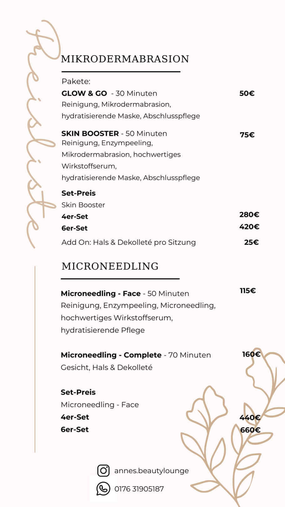 Nachfolgend findest du eine Übersicht über mein Angebot und meine Preise.